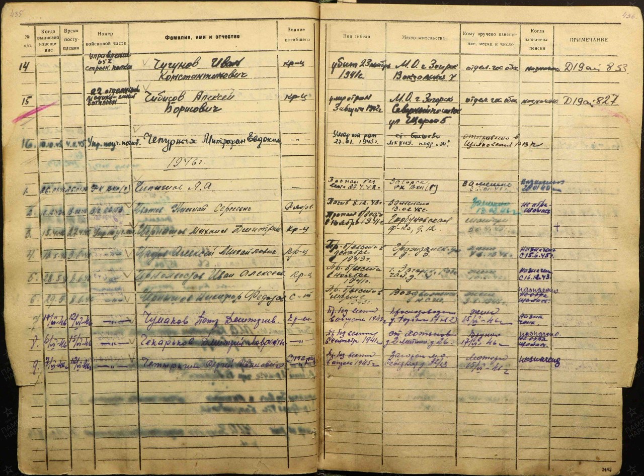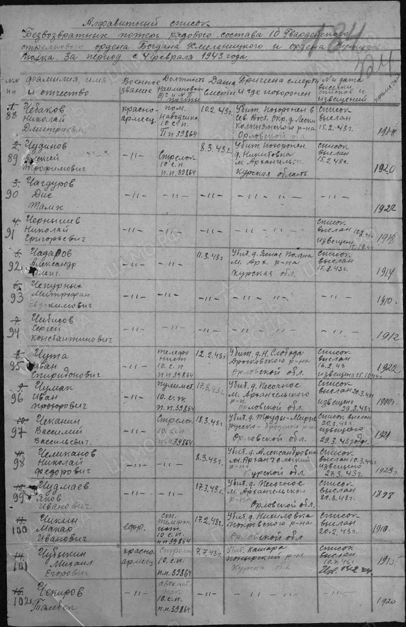 Списки воинов, погибших и пропавших без вести на фронтах Великой Отечественной войны