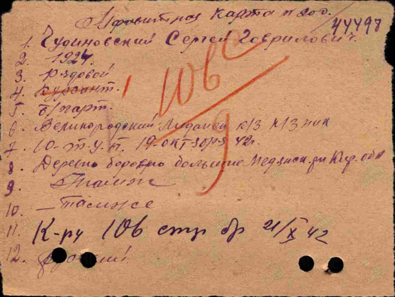 Военно-пересыльный пункт: Горьковский ВПП Выбытие из воинской части 21.10.1942