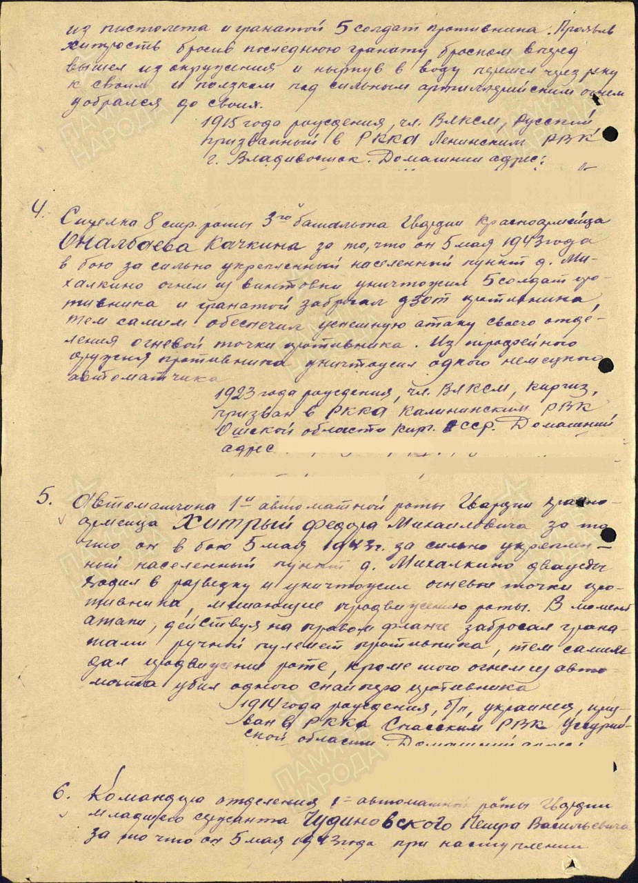 | 4314233021 | ЧУДИНОВСКИХ Петр Васильевич | 1919 г. р., из дер. Алешичи Великорецкого с/с, ст. сержант 24 сп, 10 вдд, умер от ран в ППГ-577. | Кировская область, Юрьянский район |