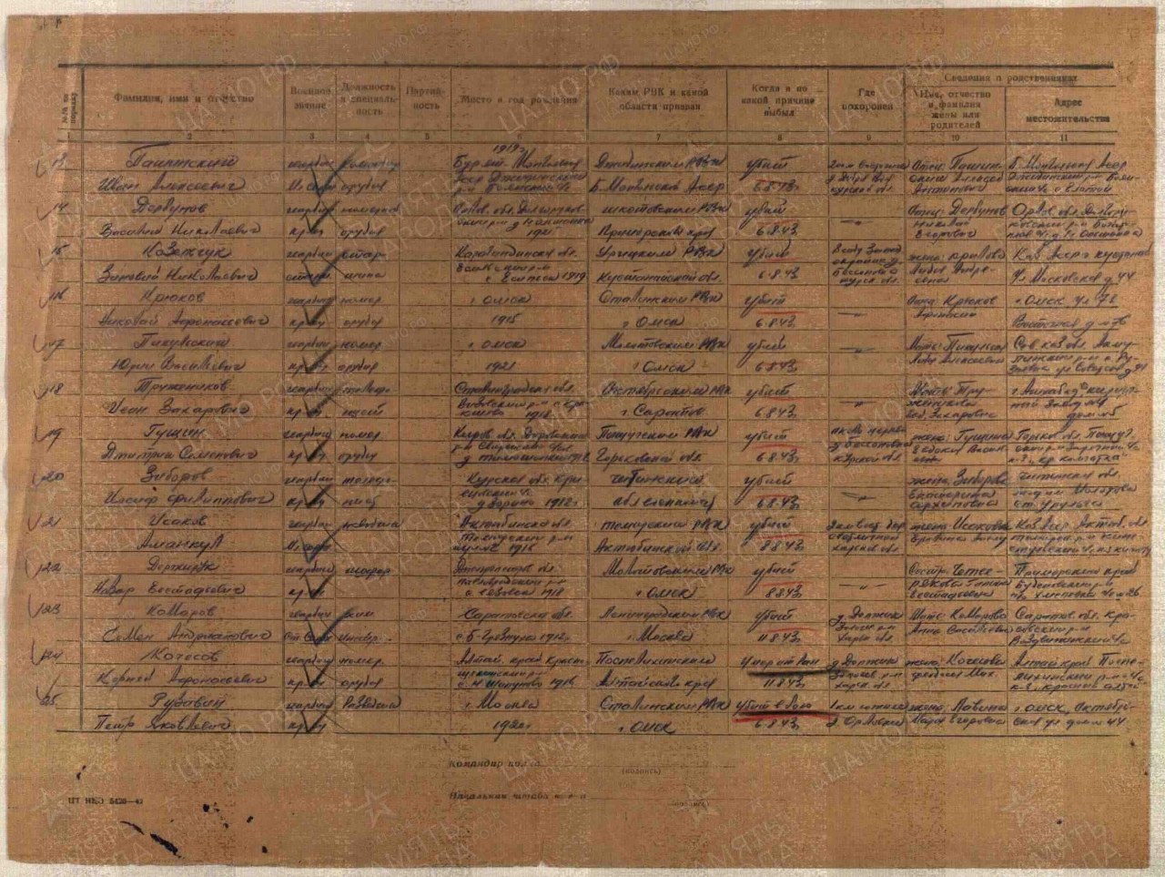Списки воинов, погибших и пропавших без вести на фронтах Великой Отечественной войны