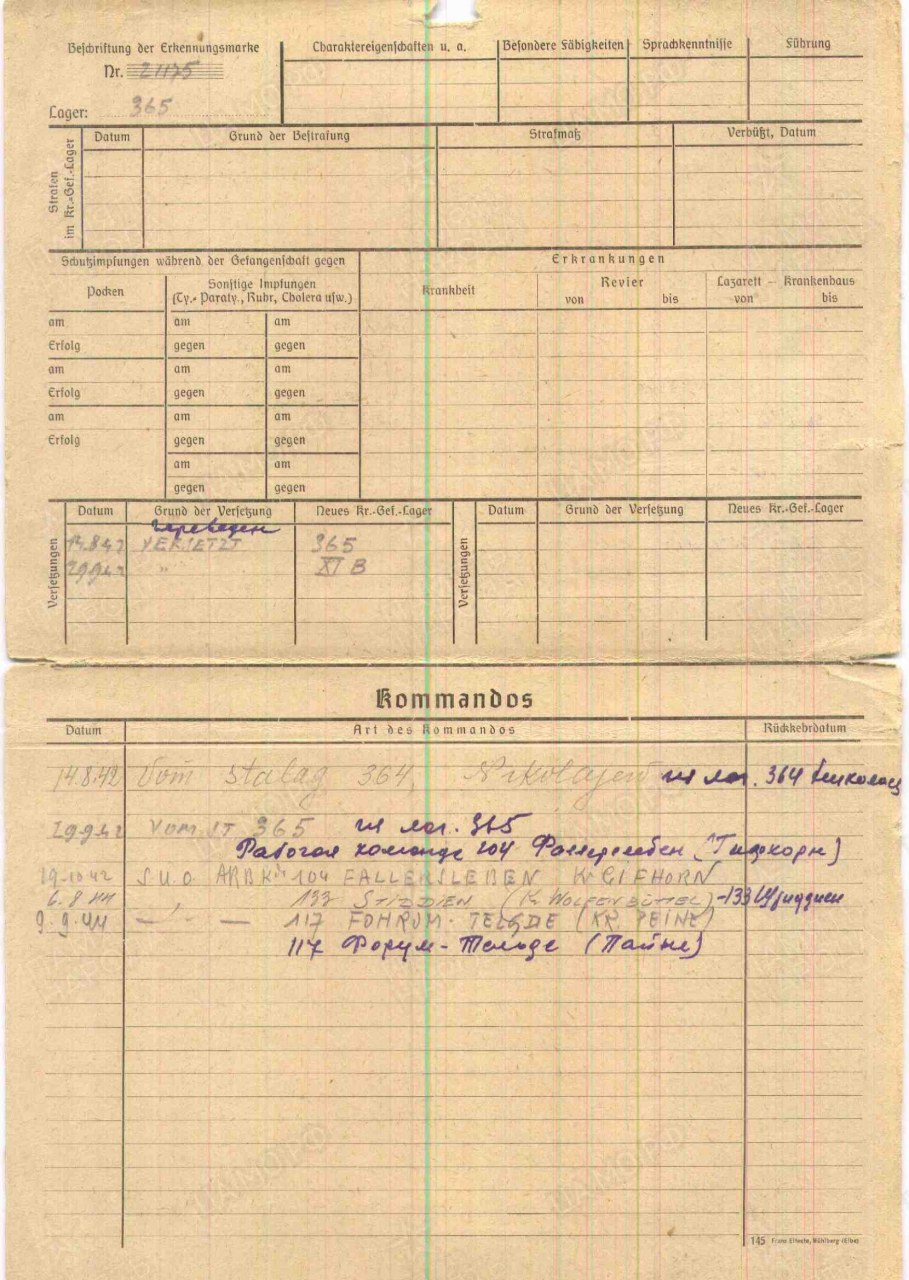 Карта военнопленного