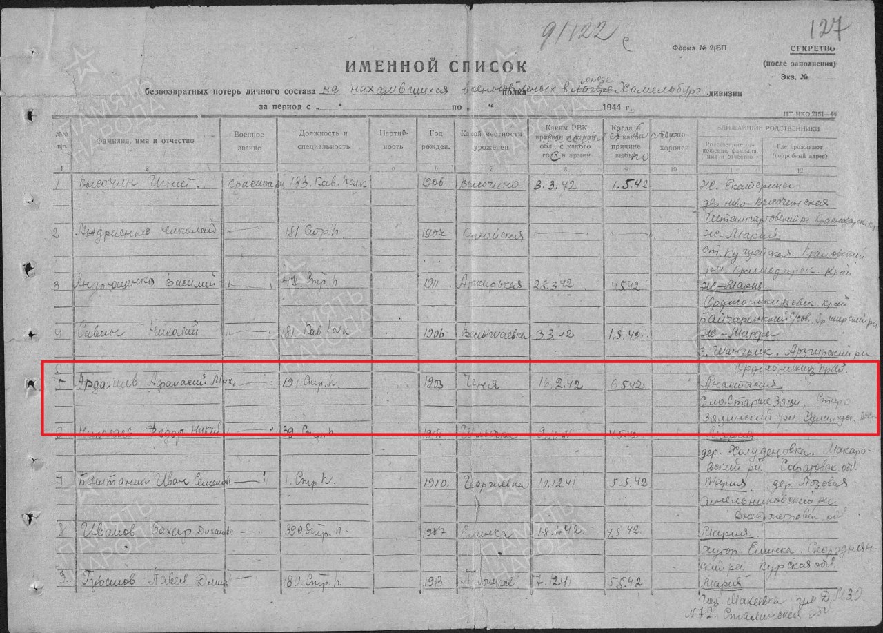 | Попал в плен | 16.02.1942 | Артёмовск |