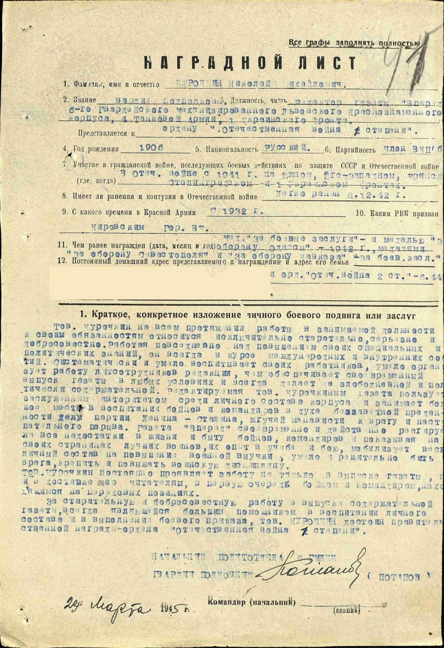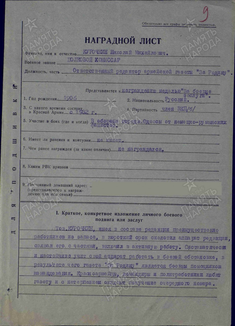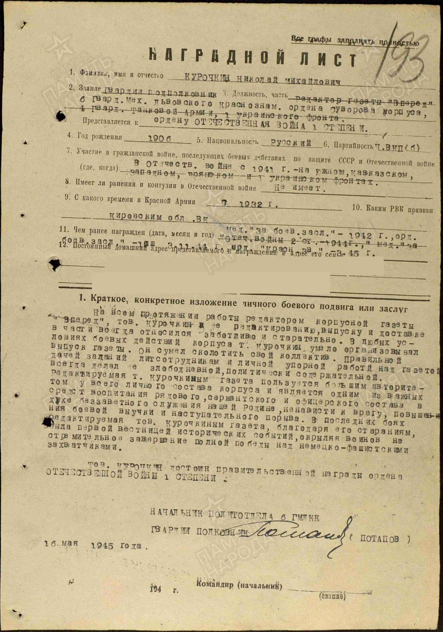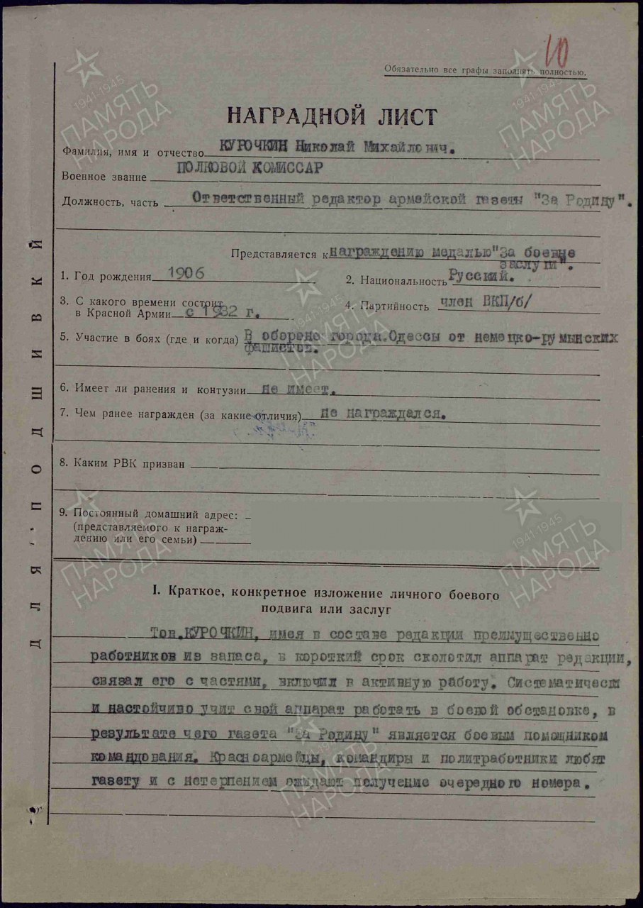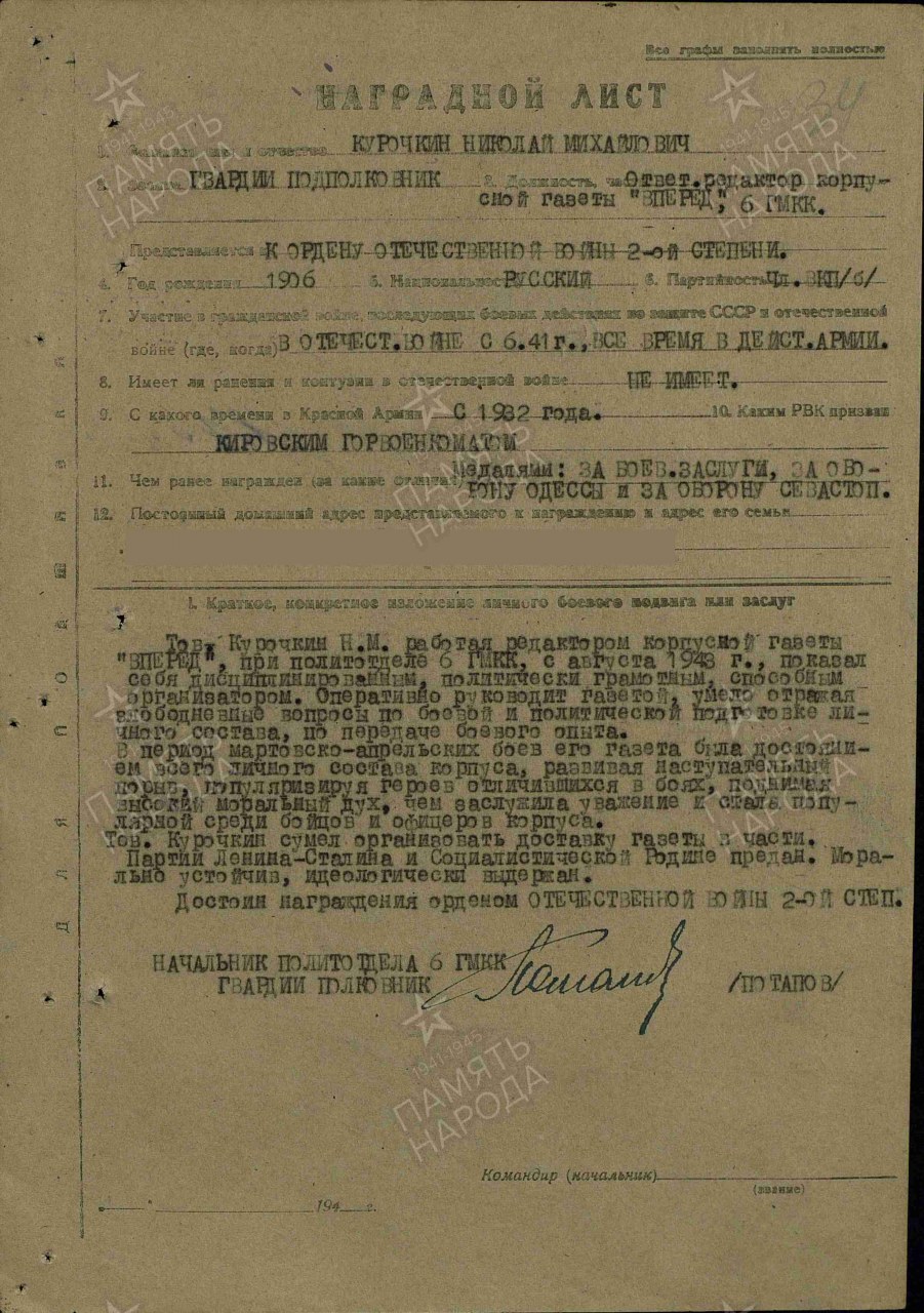 - Место службы: газета "Вперед" 6 гв. мехд 47 А
