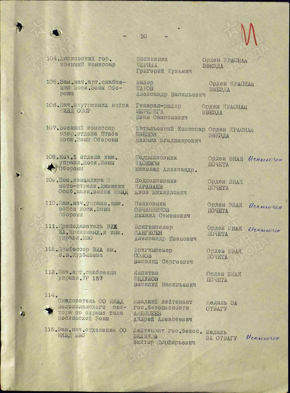 17.8.-20.9.1941 – комендант 35 Волоколамского УР и г. Волоколамска.