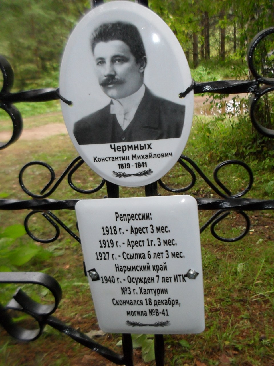 | 1609424 | Чермных Константин Михайлович | Род. 1879, и р-н, с. Суна, Сунский с/с Национальность: русский Проживание: г. Кирове Занятие: работал упаковщиком на базе. | Обвинение: по ст. 58 п. 10 УК РСФСР Осуждение: 09.07.1940, Кировский облсуд Приговор: 7 лет лишения свободы. | Дата: 18.07.1990 | Книга Памяти Кировской обл. (тт. 1-4) |