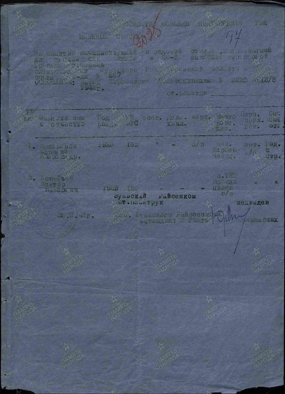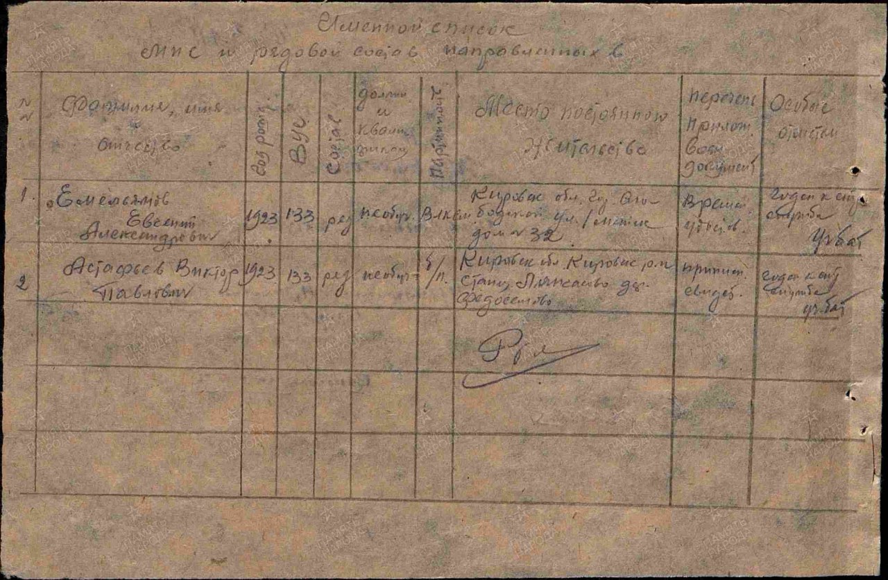| дата призыва | - | май и август 1941 г. Слободской РВК | |
