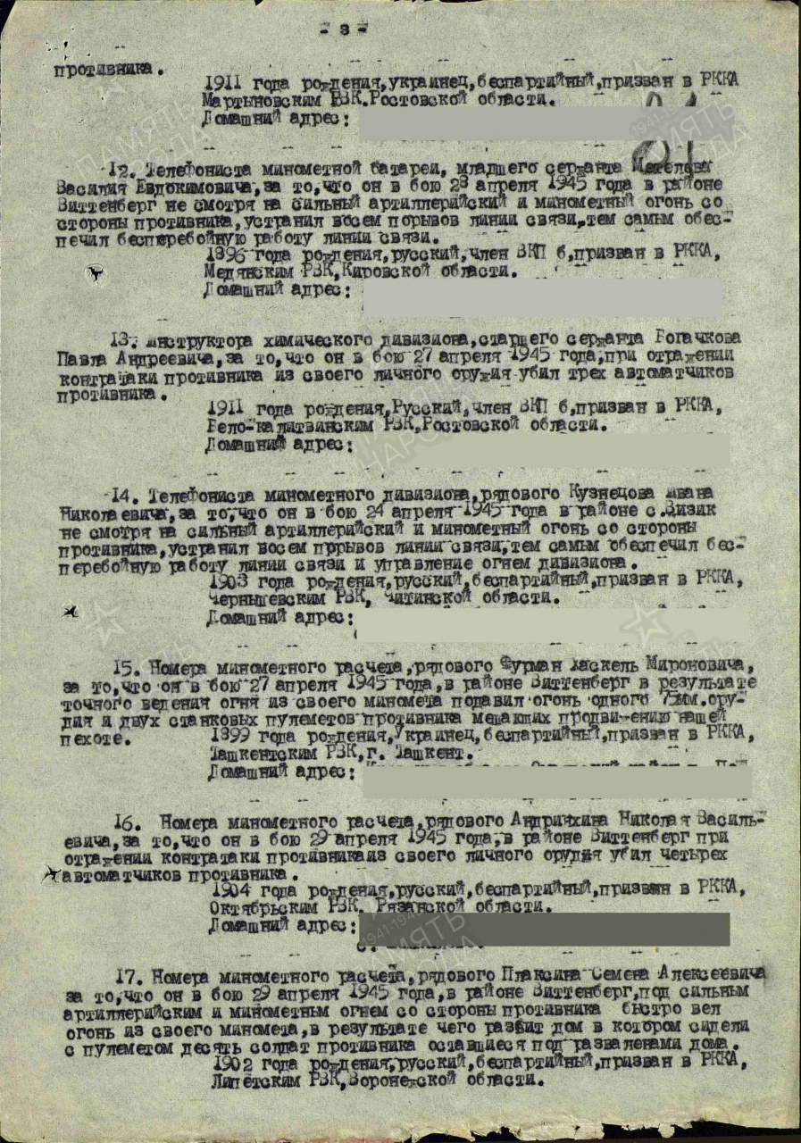 Воинское звание: ефрейтор, телефонист минометной батареи