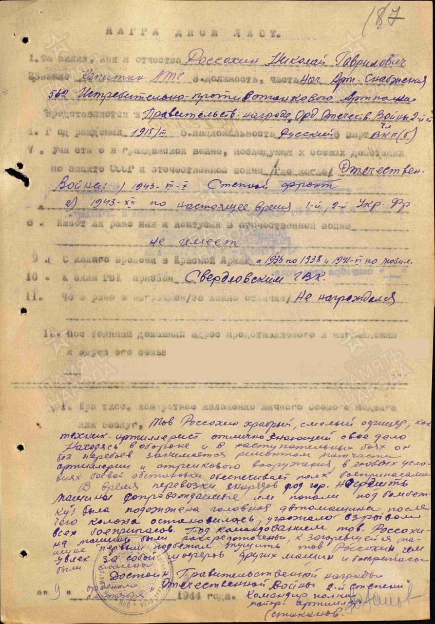 Воинское звание: капитан арт.-тех. сл.