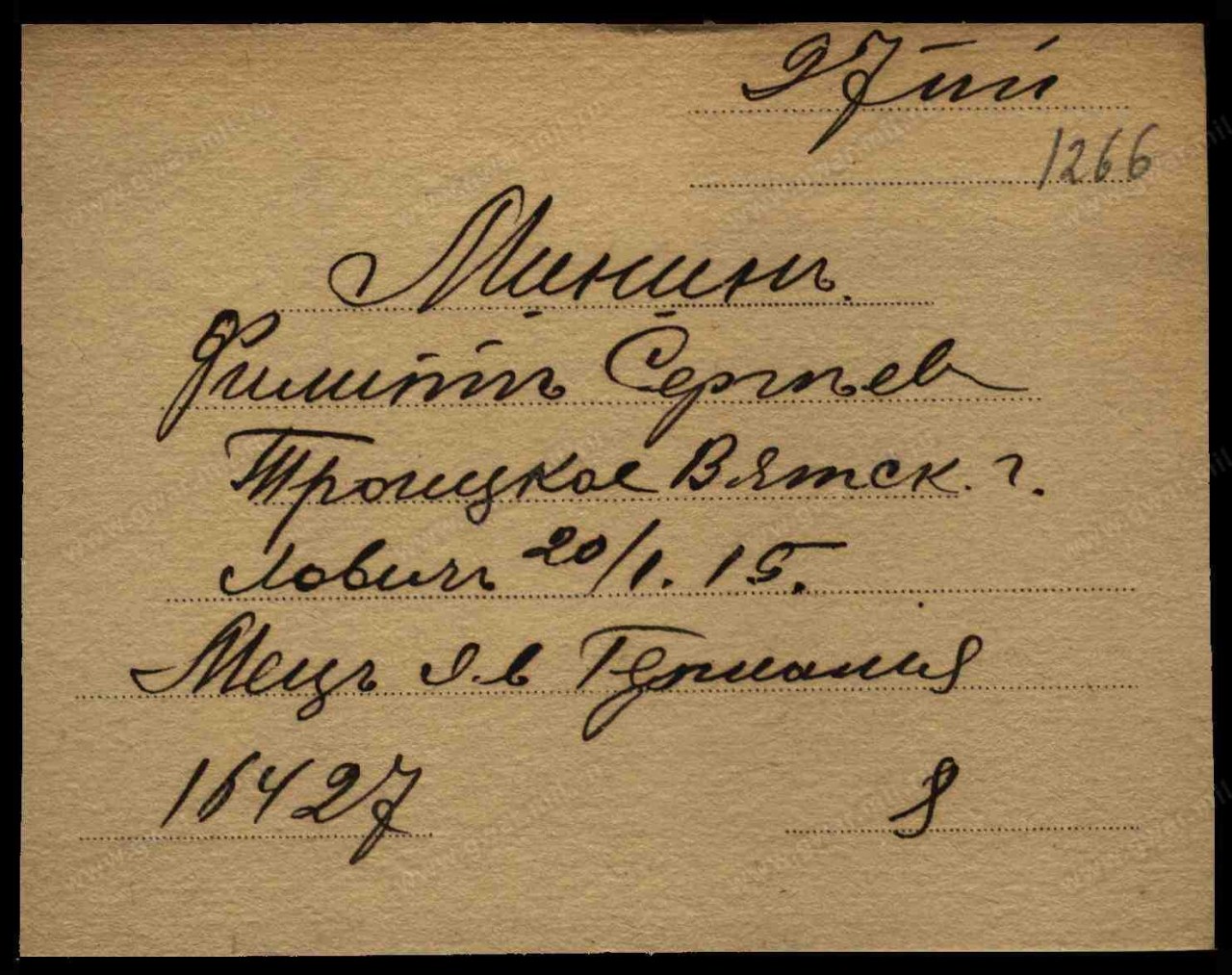 | Родился | 05.10.1892 | деревня Воробьева Гора (Советский район, Кировская область) - существующий н.п. | д. Воробьева Гора, Троицкая волость, Яранский уезд, Вятская губерния, https://gwar.mil.ru |