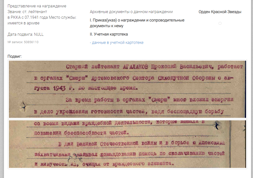 Наименование воинской части: особ. штаб ТОФ,особ. штаб СМЕРШ ТОФ