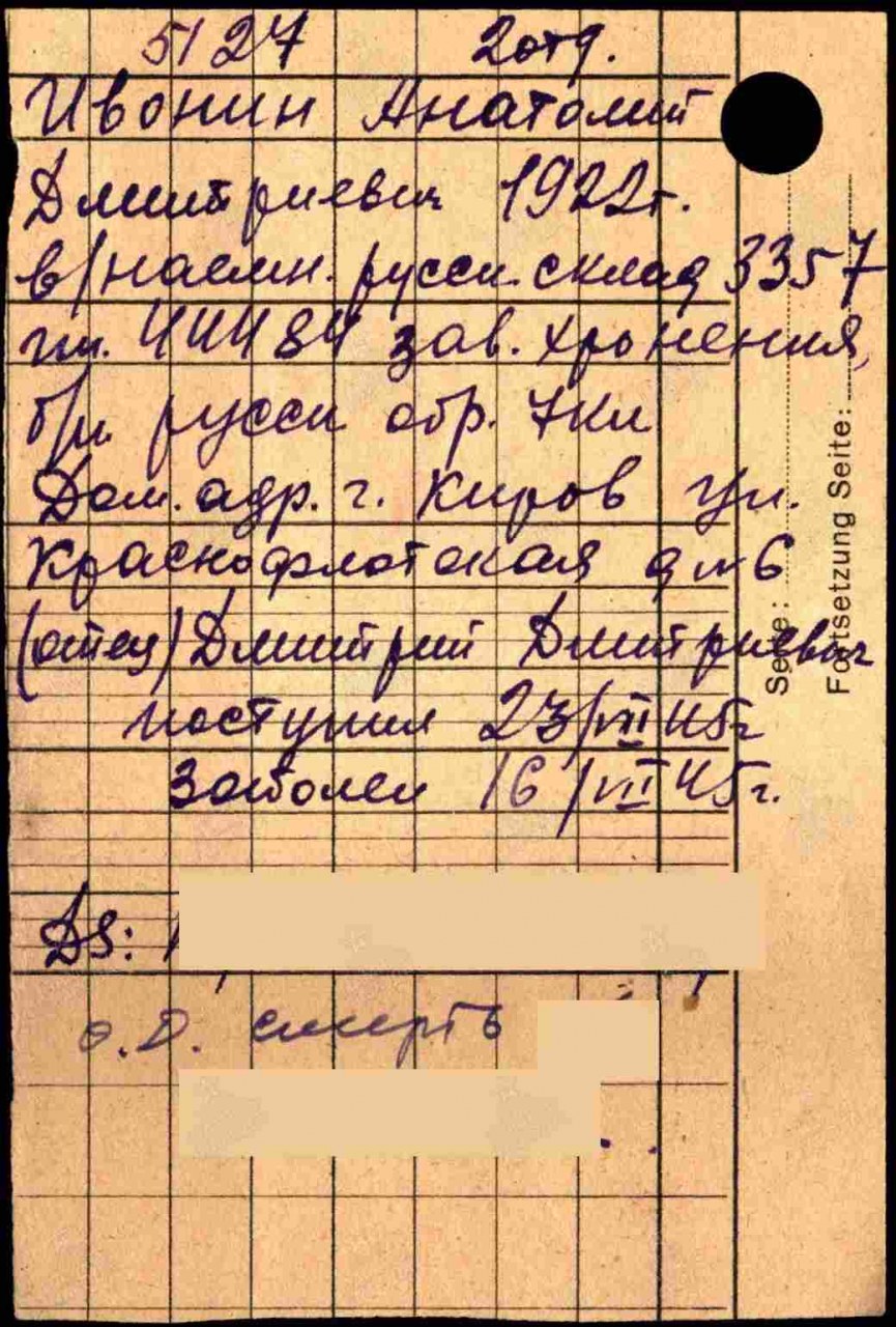Последнее место службы: склад 3357 п/п 44484 98 отд. рабочий батальон (Иванин Анатолий Дмитриевич)