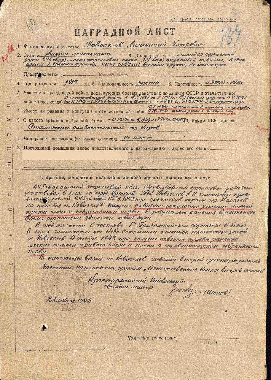 Тяжелое ранение 04.11.1943 зв бою за Ново-Сокольники