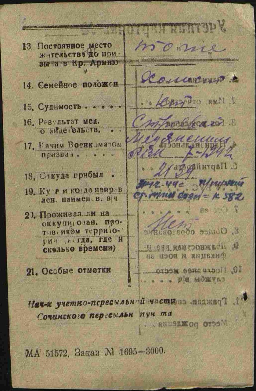 Военно-пересыльный пункт: 362 зсп 33 зсд Прибыл в часть: 03.11.1942