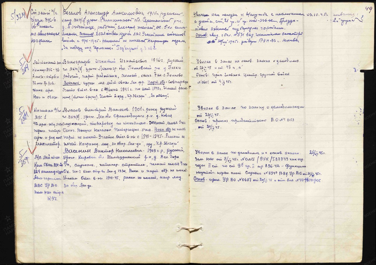 Военно-пересыльный пункт: 223 азсп 55 А Выбытие из воинской части: 10.12.1942