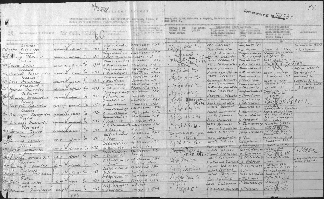 | 4308452010 | СТАРИКОВ Степан Семенович | 1903 г. р., д. Стариково Пищальского с/с, красноармеец, стрелок, 36 сп, г. Ижевск, в январе 1942 г. пропал без вести. | Кировская область, Оричевский район |