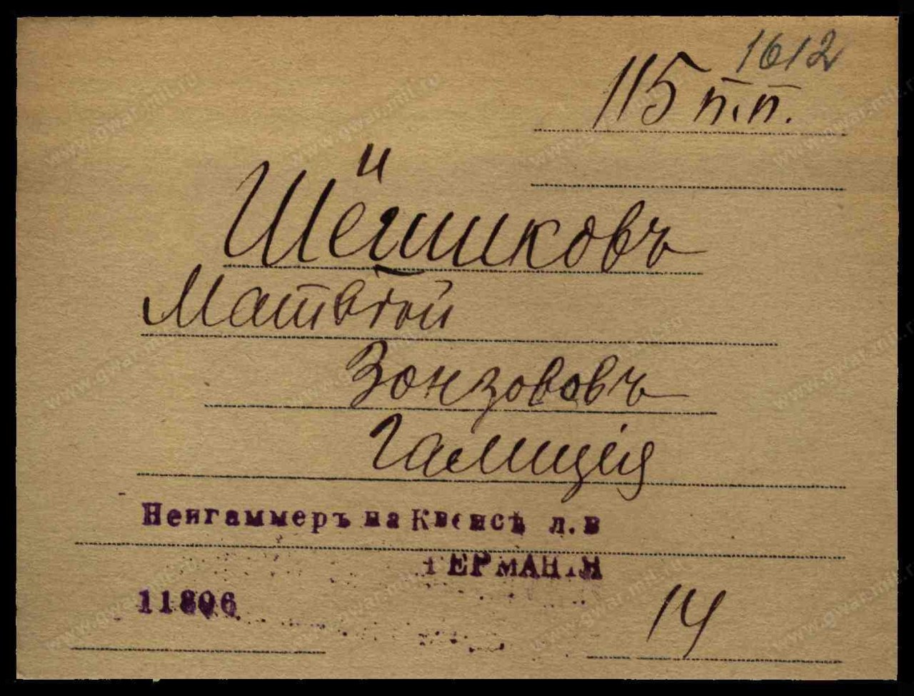 | Попал в плен | 08.02.1915 | https://gwar.mil.ru |