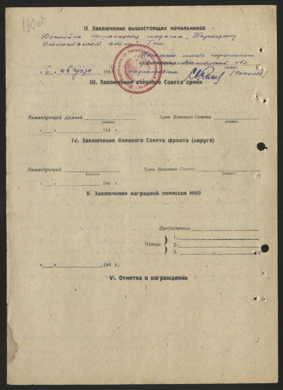 | Награждена: Медаль «Партизану Отечественной войны» I степени | - | ||