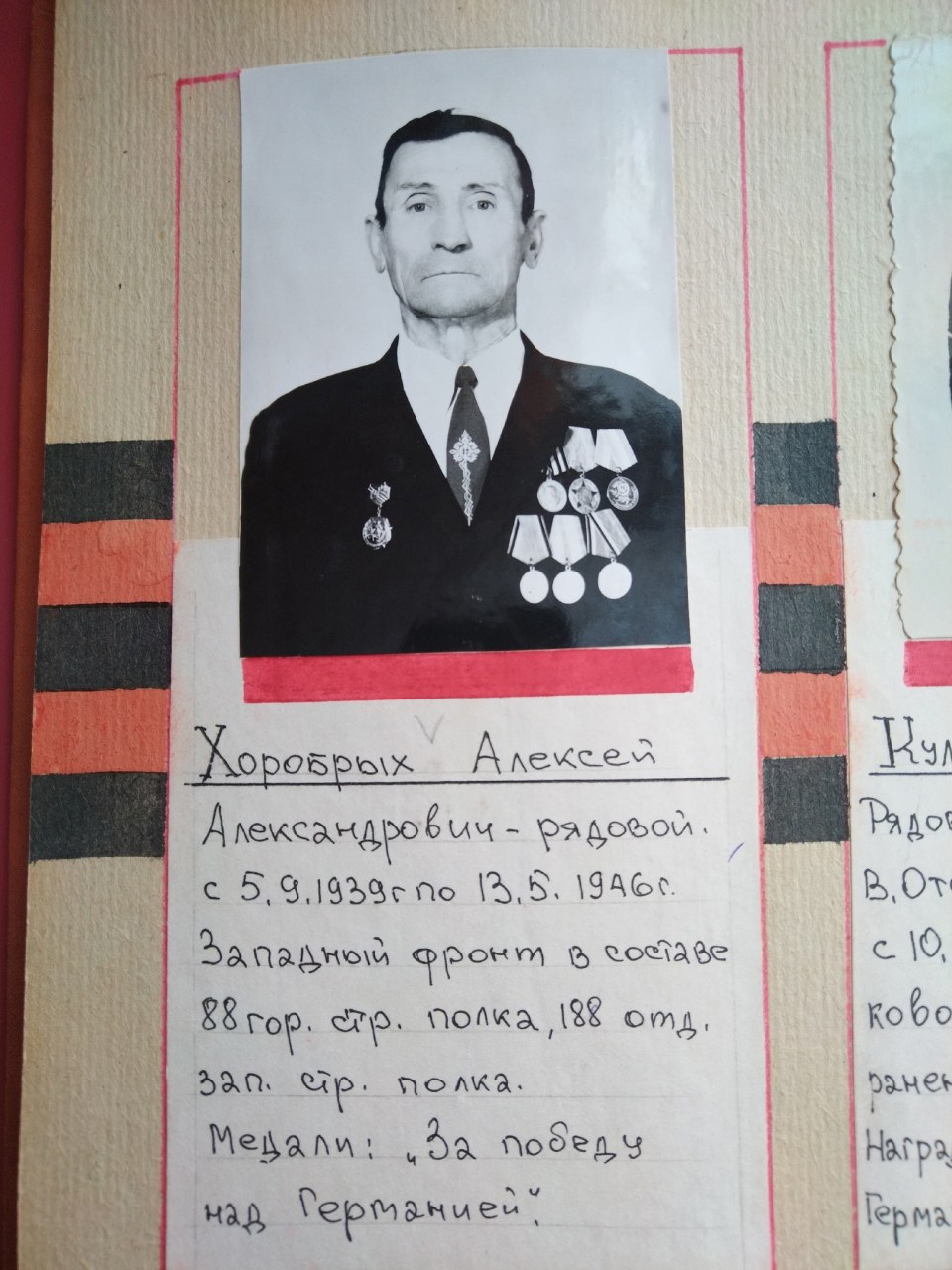 | участие в Великой Отечественной войне 1941-1945гг. | - | Красноармеец. Рядовой. Последнее место службы: 88 стрелковый полк 28 стрелковой дивизии | |
