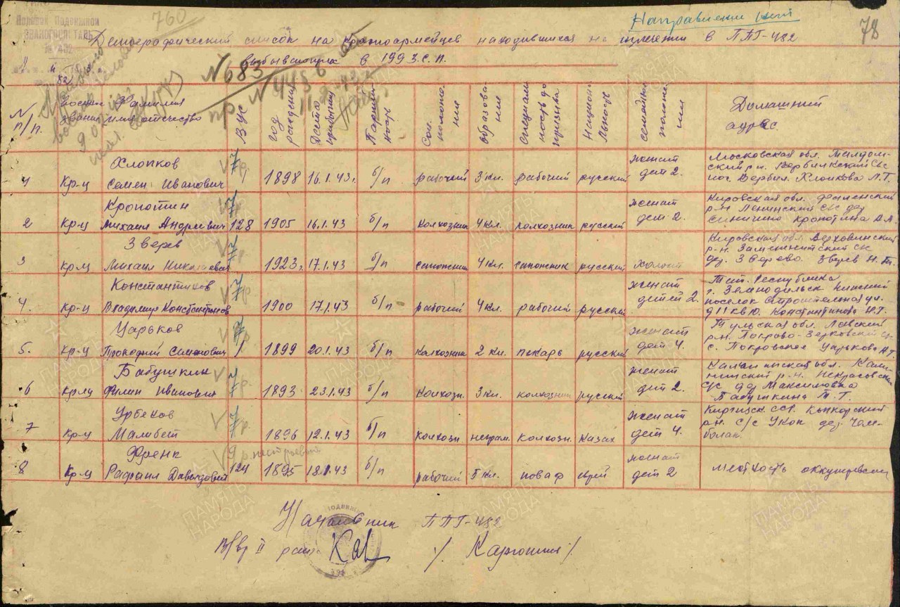Военно-пересыльный пункт: 48 усп Выбытие из воинской части: 24.10.1942