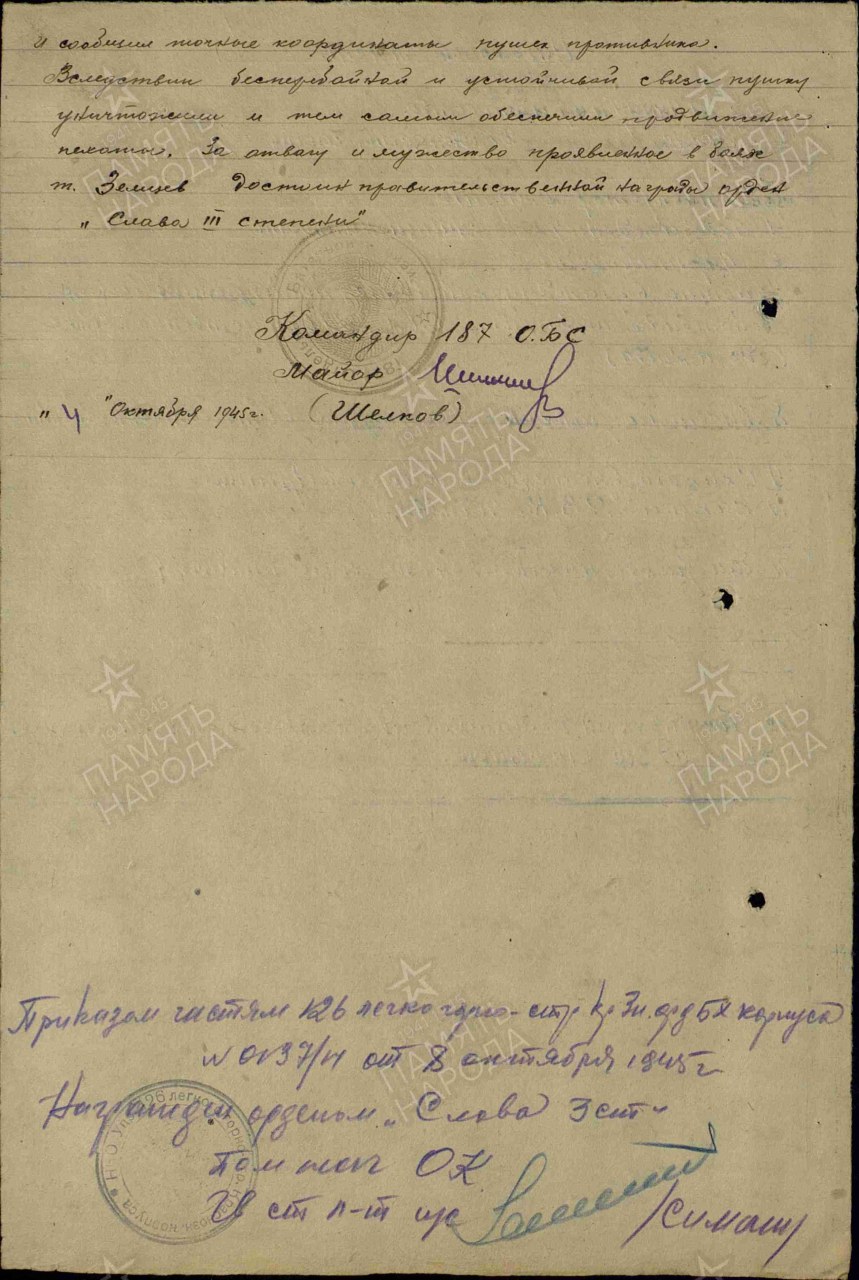 Воинская часть: 662 отдельный батальон связи Выбытие из воинской части: 24.07.1945