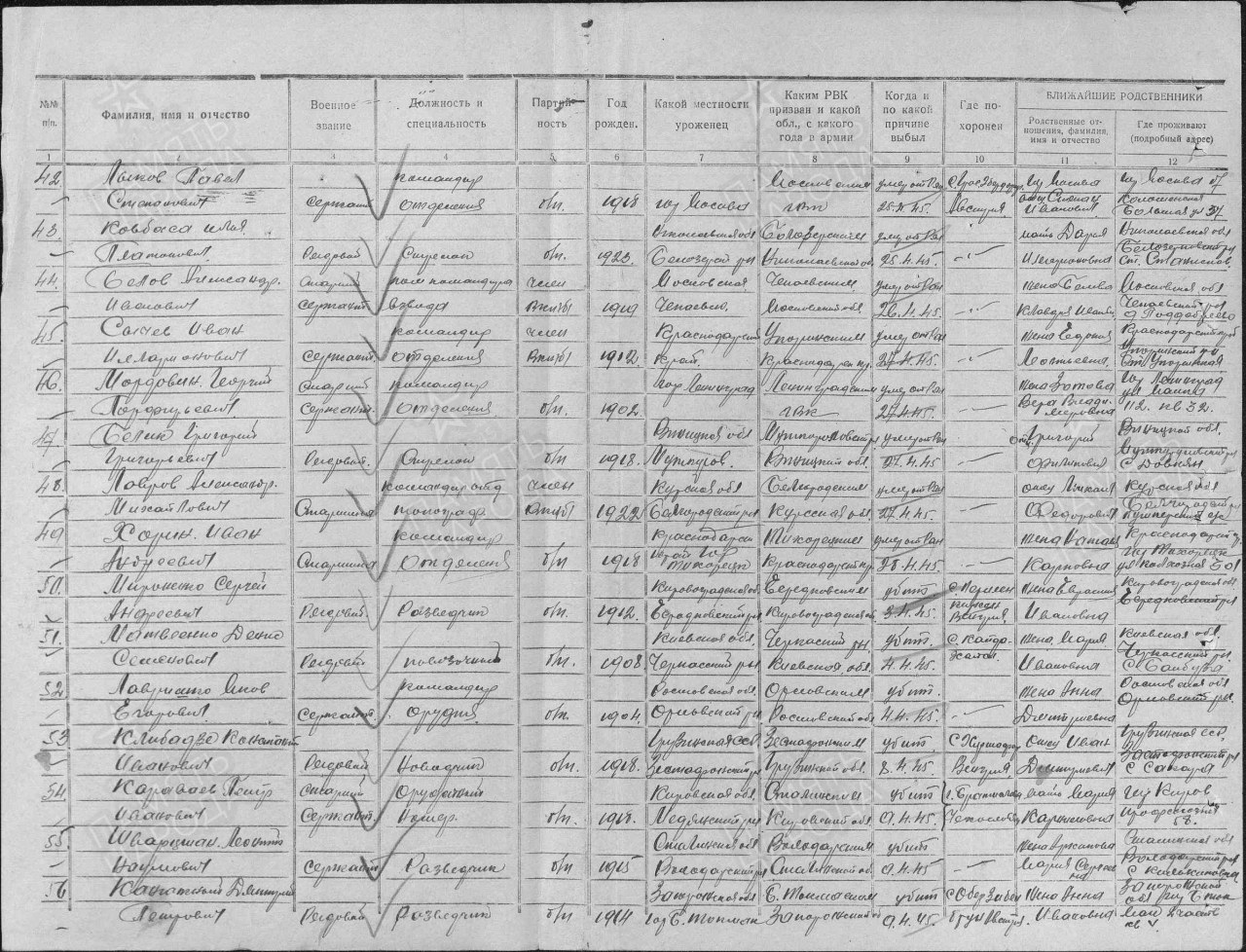 Списки воинов, погибших и пропавших без вести на фронтах Великой Отечественной войны