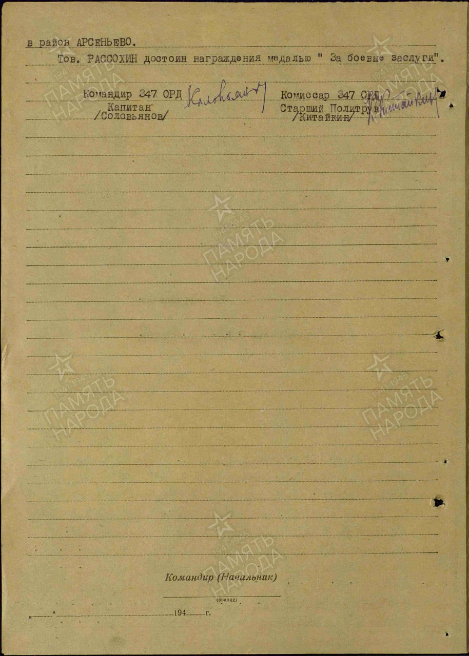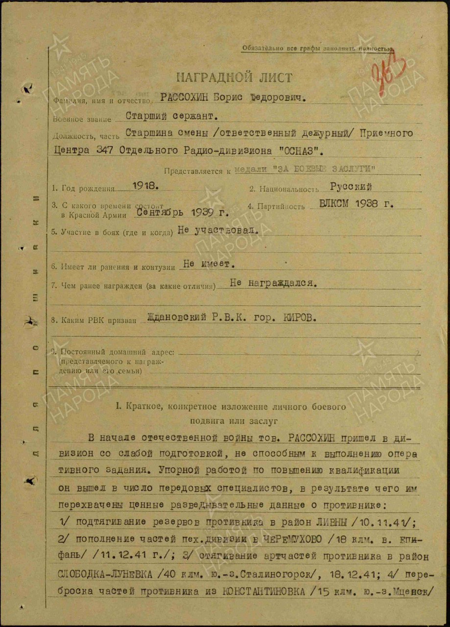 Дата поступления на службу: 24.11.1939