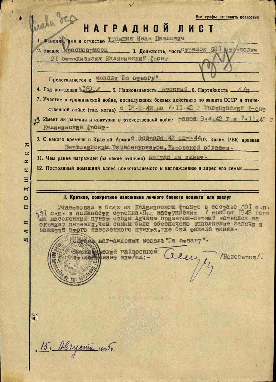 Место призыва: Верховинский РВК, Кировская обл., Верховинский р-н