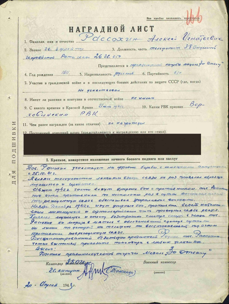Последнее место службы: 26 гв. сд 38 отд. гв. бат. связи.
