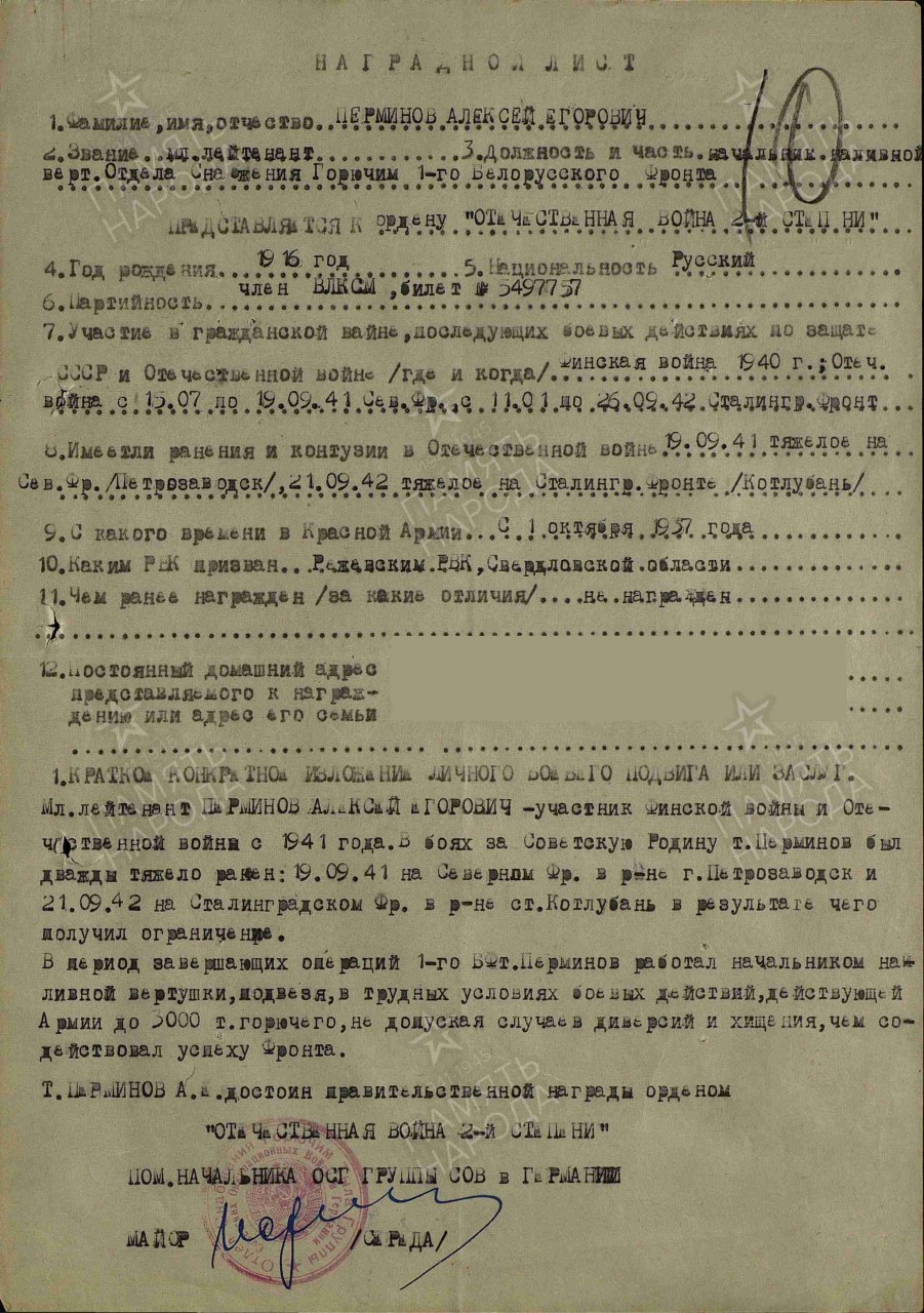 Демобилизован после излечения в связи с ранением в декабре 1945 года. В Режевском лесхозе работал лесником. https://vk.com/wall-202487817_2988?ysclid=mg0pyftczb166031502