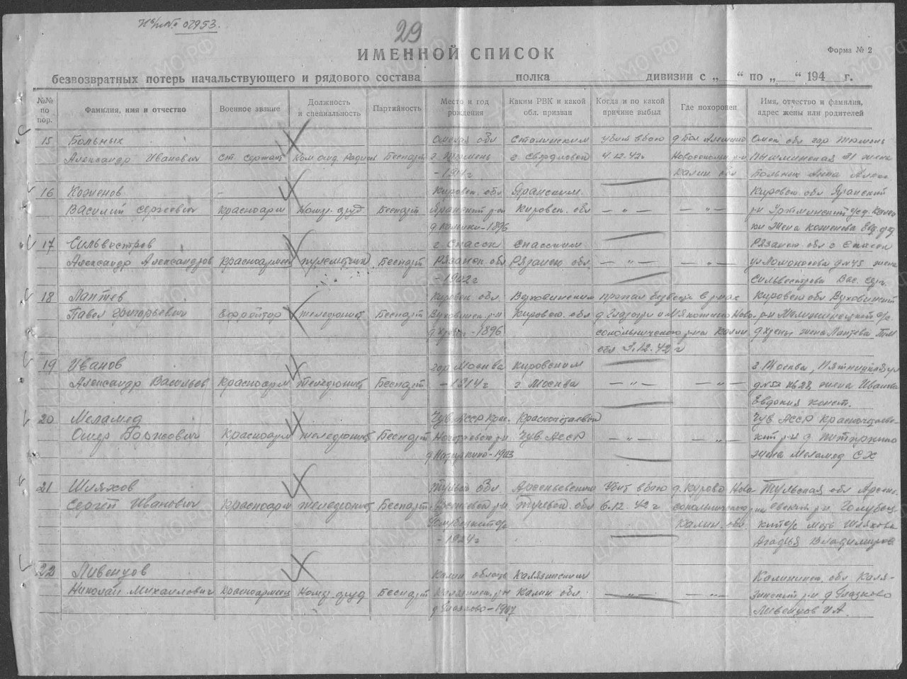 Списки воинов, погибших и пропавших без вести на фронтах Великой Отечественной войны