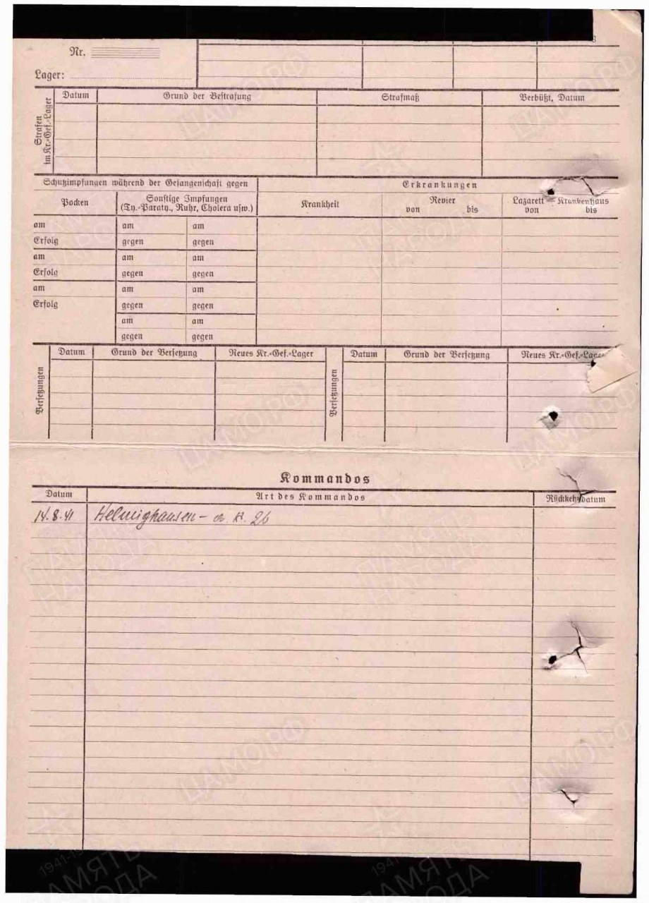 | Погиб | 17.11.1941 | Хельмигхаузен |