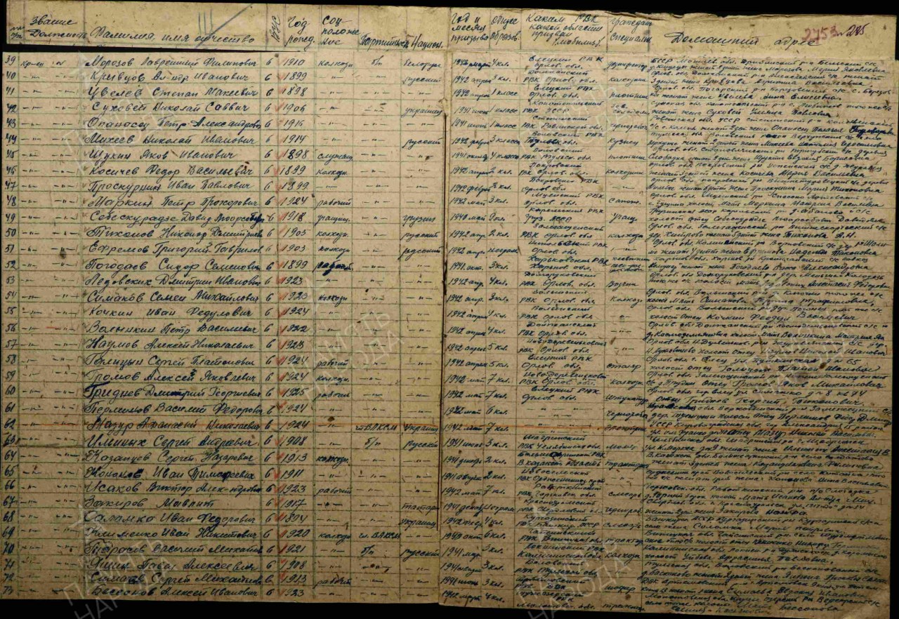 Военно-пересыльный пункт: 18 азсп Выбытие из воинской части: 10.08.1942