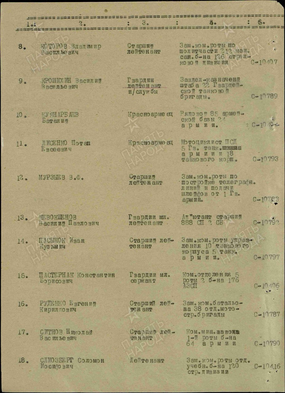 Приказ о награждении: наградной лист 23.09.1944 г источник донесения 40 Армия // Подвиг Народа ЦАМО ф 395 оп 9166 ед. хр. ф. 61.
