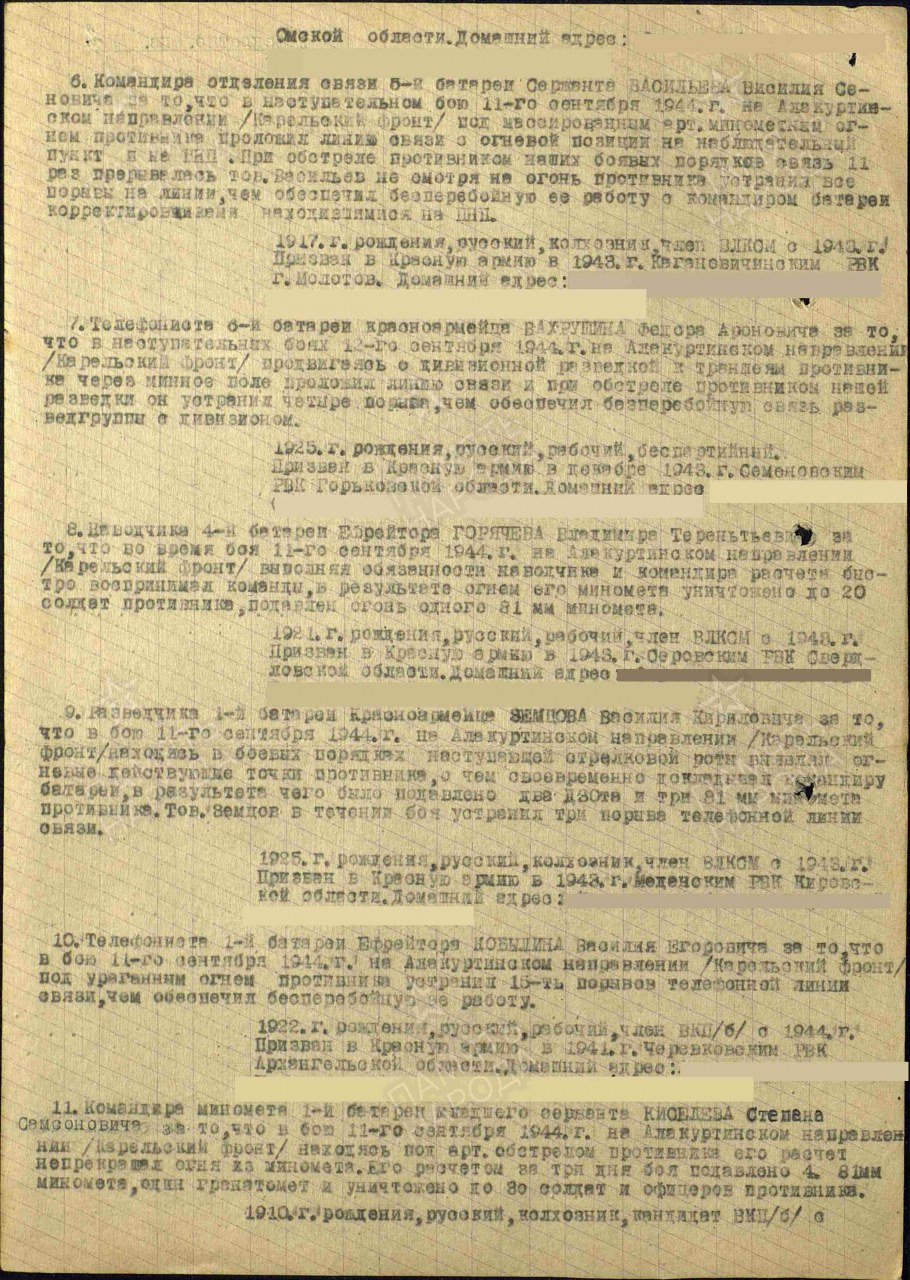 Дата и место призыва: Медянский РВК, Кировская обл., Медянский р-н