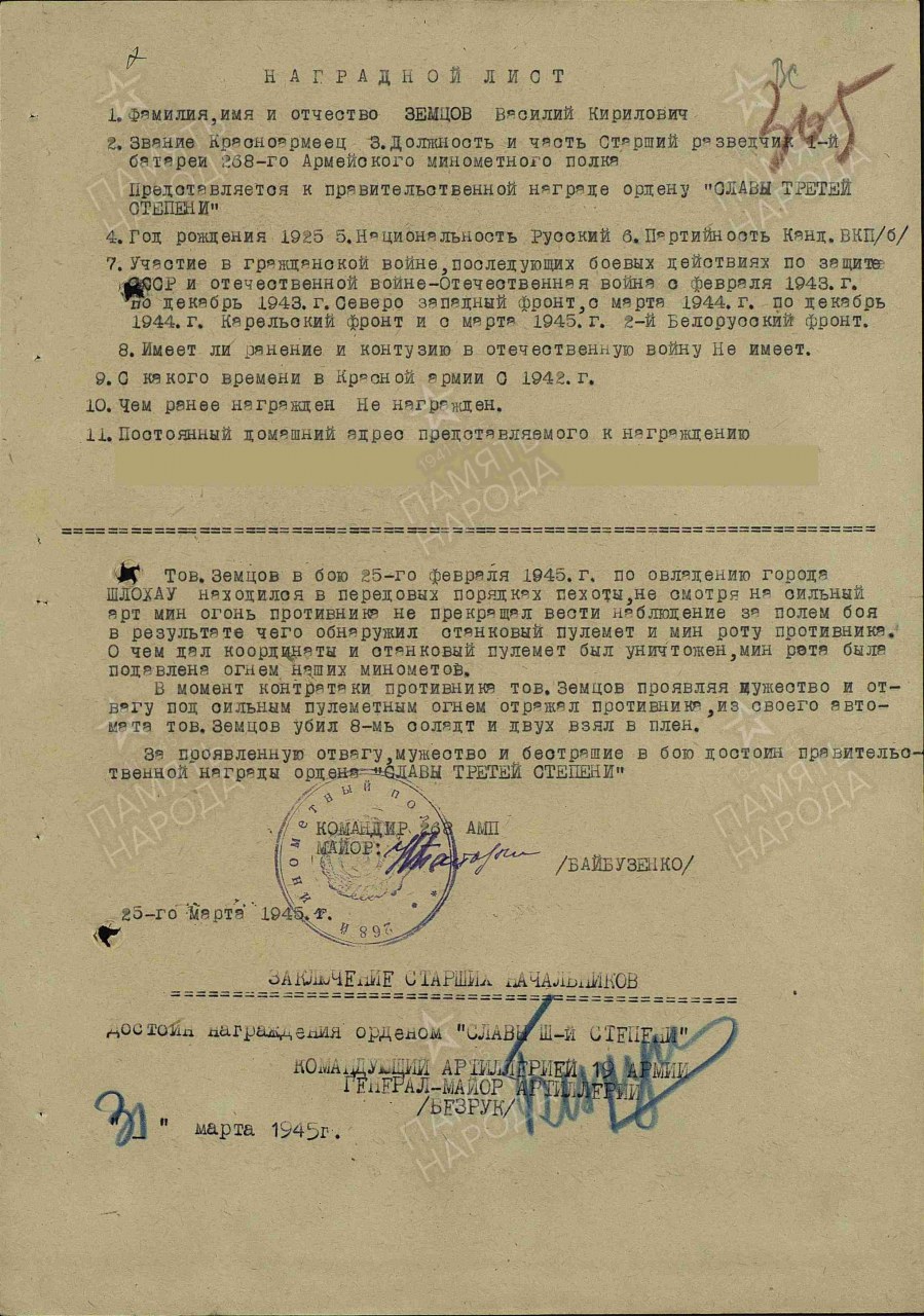 | 4314069016 | ЗЕМЦОВ Василий Кириллович | 1909 г. р., из д. Медвега Монастырского с/с, красноармеец, 30.03.1945 г. погиб в бою. Захоронен в д. Рамень. | Кировская область, Юрьянский район |