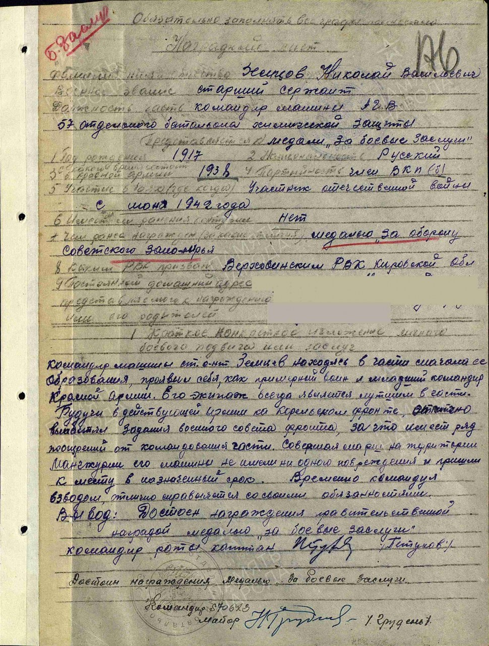 Воинская часть: 57 обхз Дата прибытия: 08.09.1943