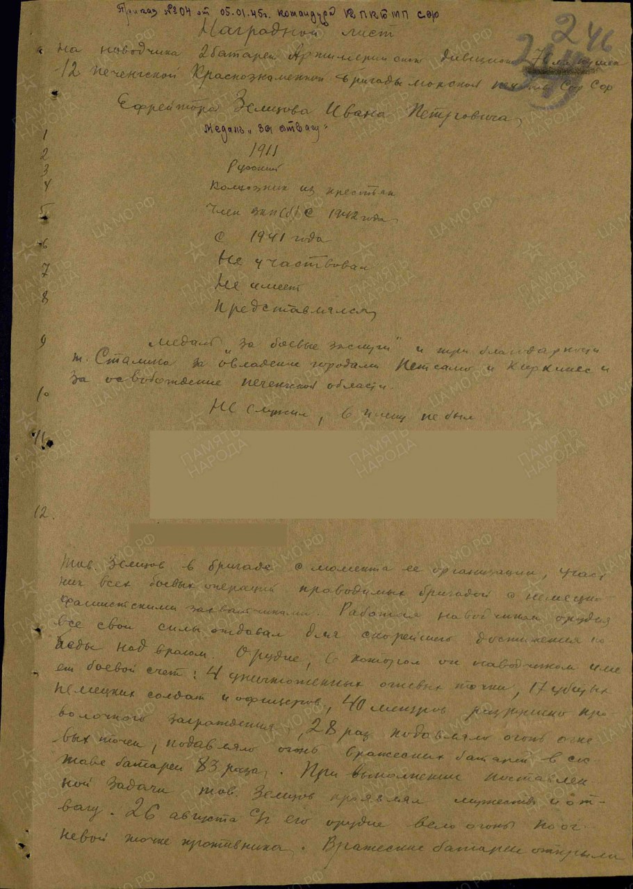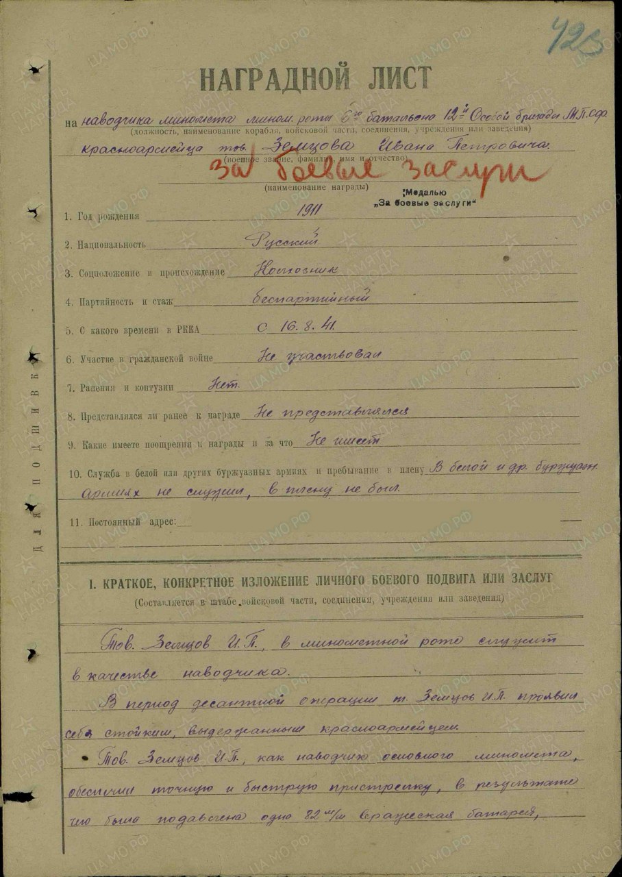 Приказ подразделения №: 23 от: 15.07.1942 Издан: СФ