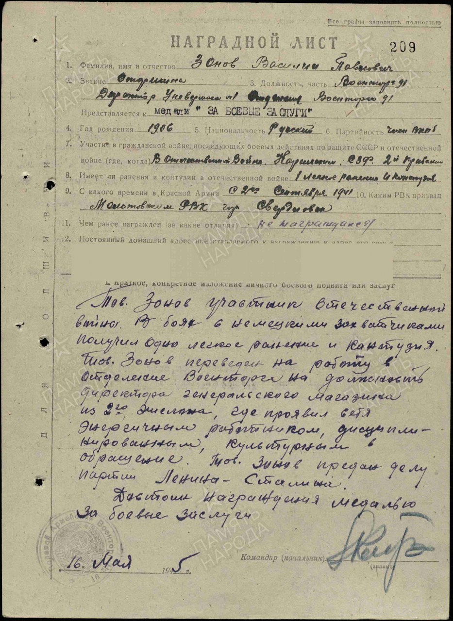 Место призыва: Молотовский РВК, Свердловская обл., г. Свердловск, Молотовский р-н