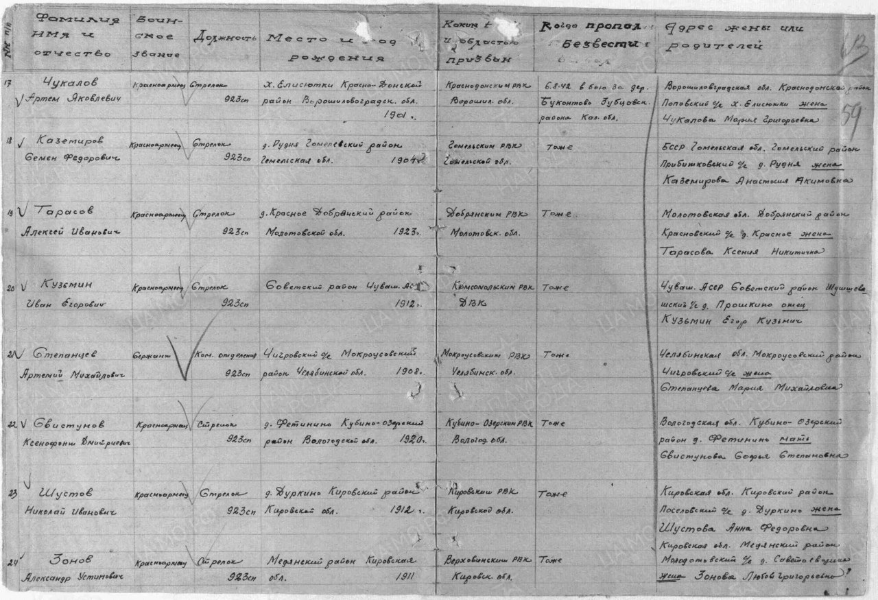 Списки воинов, погибших и пропавших без вести на фронтах Великой Отечественной войны