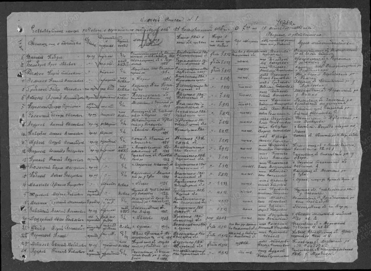Списки воинов, погибших и пропавших без вести на фронтах Великой Отечественной войны