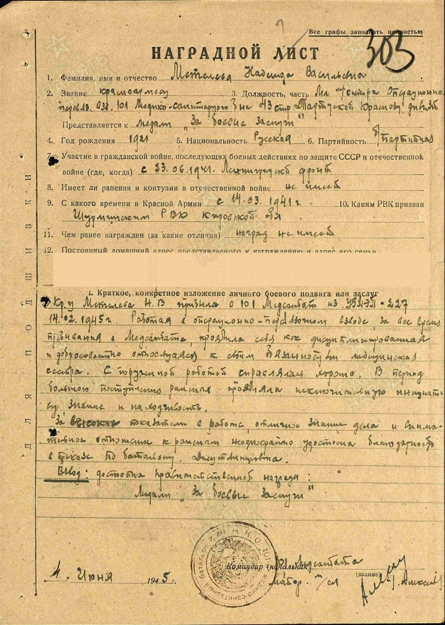 Военно-пересыльный пункт: 225 азсп 54 А Прибыл в часть: 28.05.1944