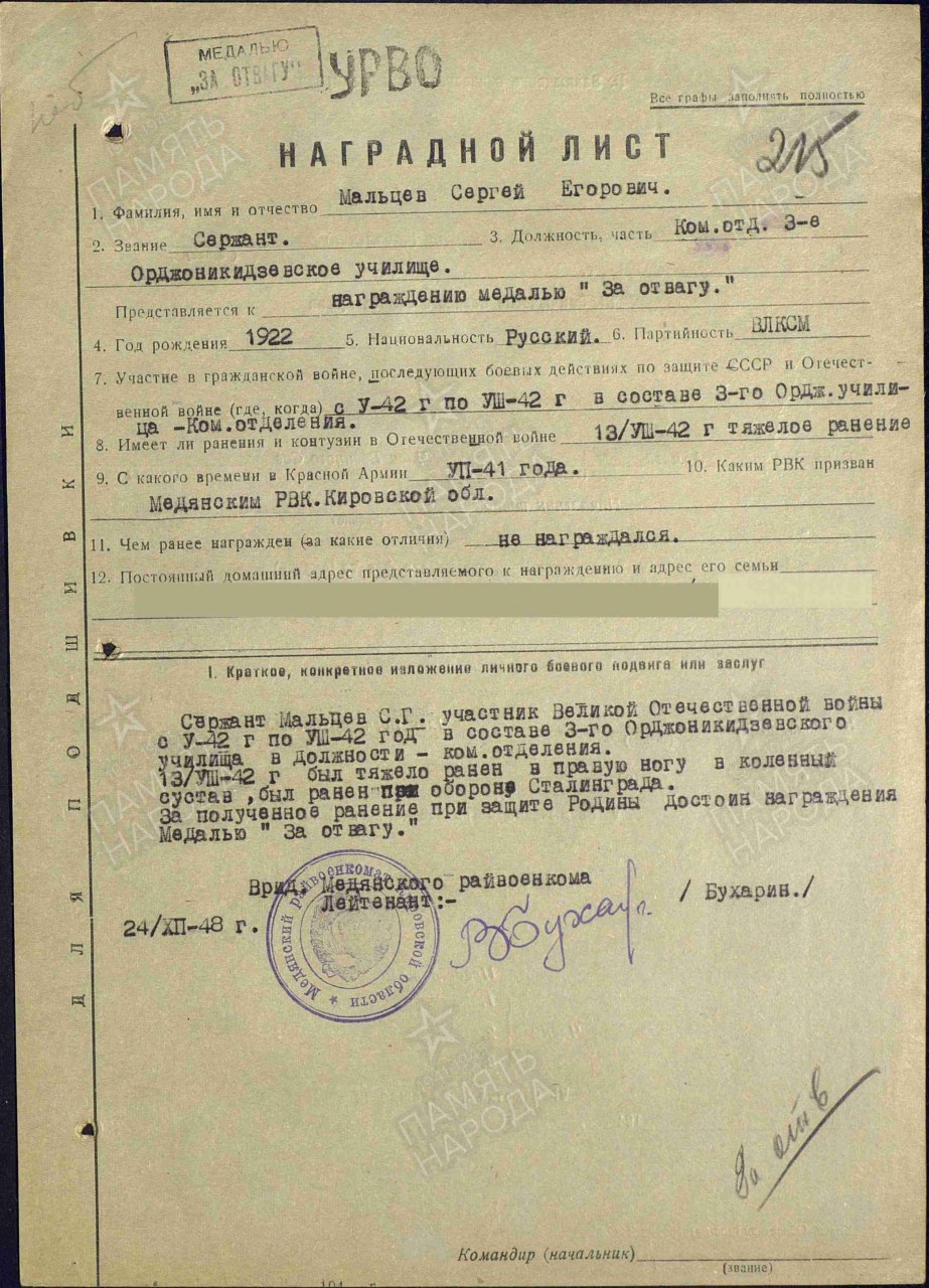 На все фронты курсанты военных училищ направлялись по приказам Ставки Верховного Главнокомандования, а на защиту Сталинграда они были направлены по прямому указанию Верховного Главнокомандующего. Обстановка требовала того. Немецко-фашистские захватчики собирались взять Сталинград к 25 июля 1942 года. Об этом свидетельствует и недавно рассекреченный уникальный документ, подписанный лично И.В.Сталиным, – директива Ставки Главнокомандования командующим войсками Сталинградского и Северо-Кавказского фронтов.