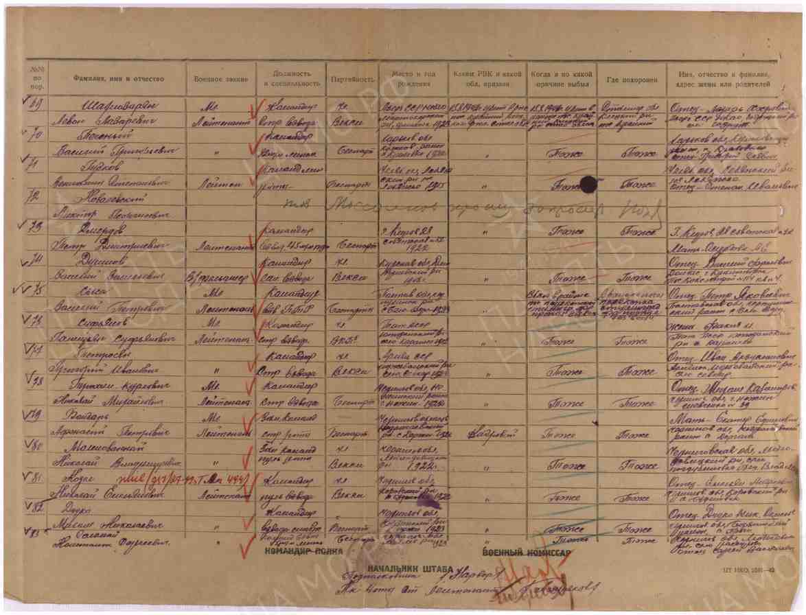 Воинское звание: лейтенант, ком. батареи 76(45) мм пушек