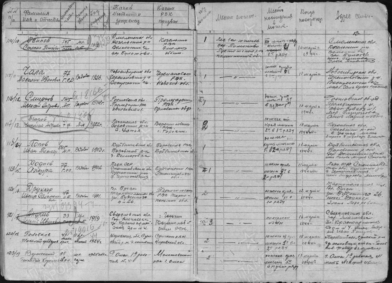 Списки воинов, погибших и пропавших без вести на фронтах Великой Отечественной войны