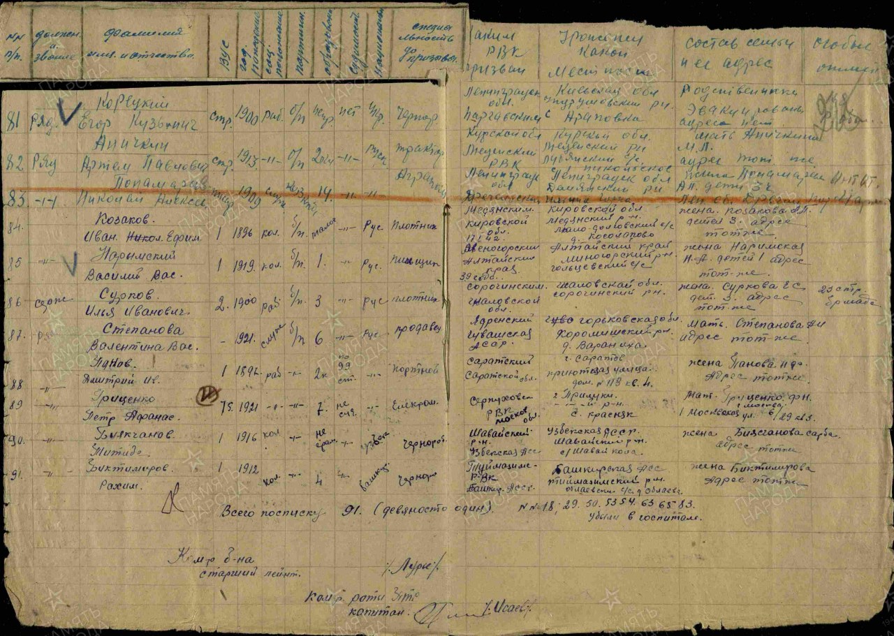 Военно-пересыльный пункт: 225 54 А Выбытие из воинской части: 04.06.1942