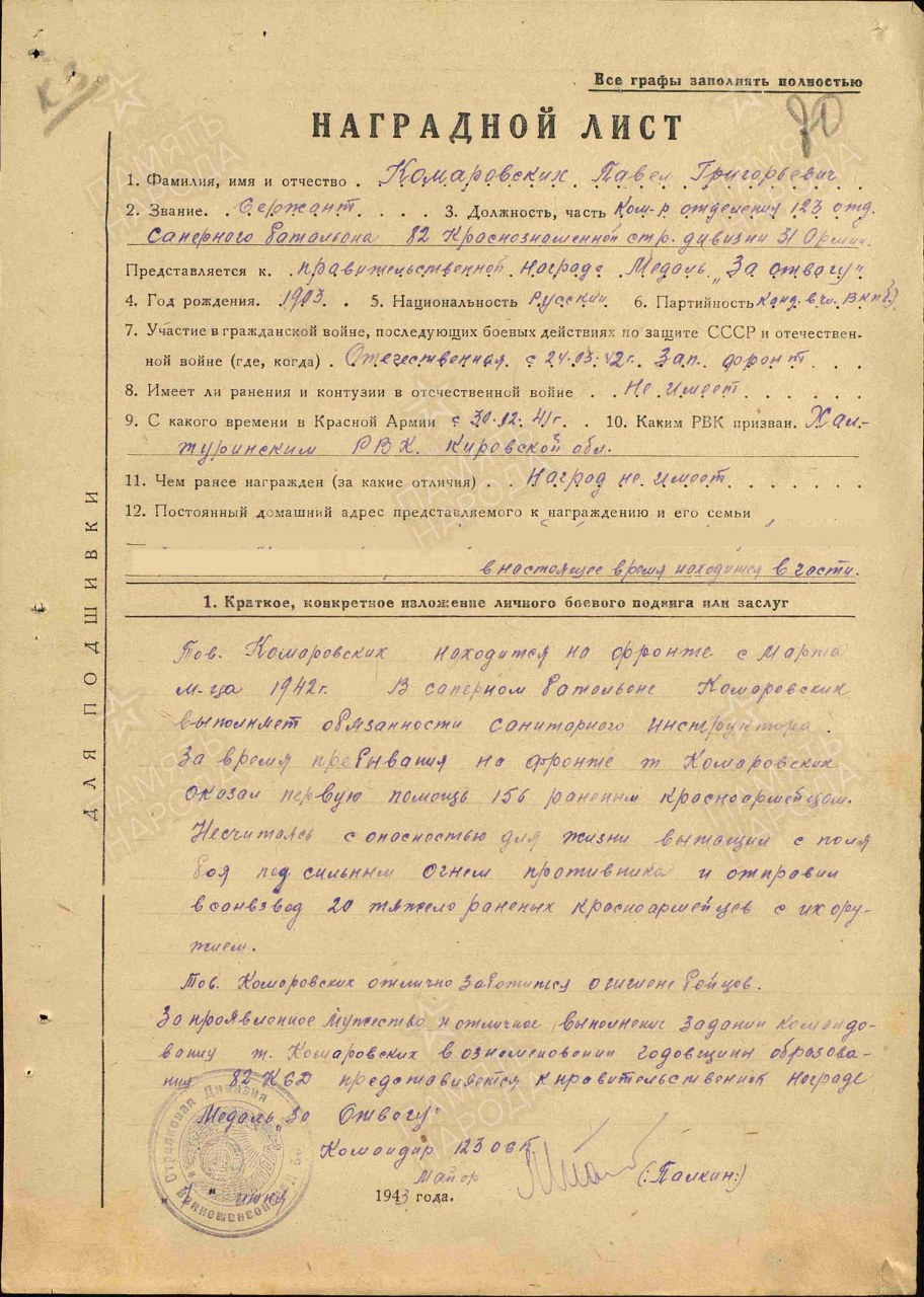 Воинская часть: 82 сд Выбытие из воинской части: 07.02.1944