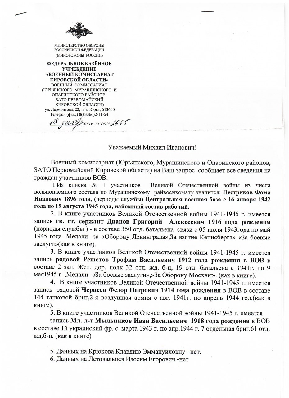 | Изменил место проживания | - | посёлок Октябрьский (125 км) (Мурашинский район, Кировская область) - существующий н.п. | |