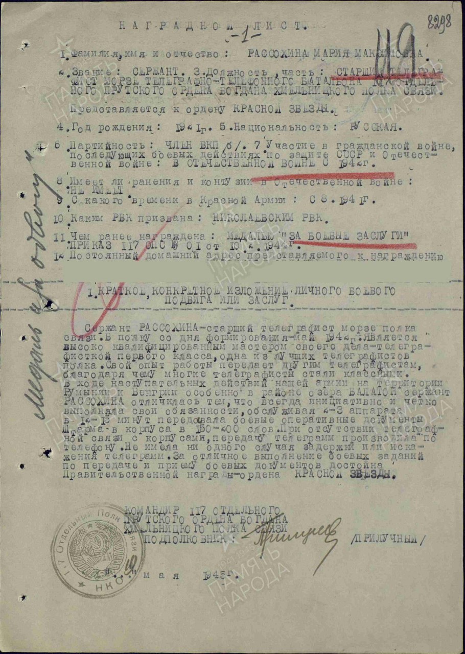 Воинская часть: 117 опс Дата прибытия: 08.05.1942