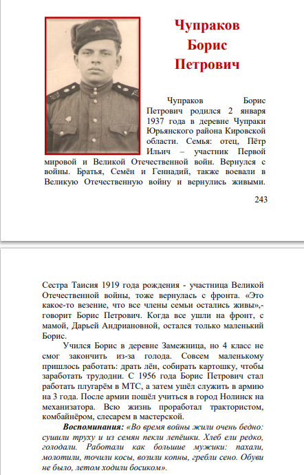 | Родился ребёнок: Чупраков Семен Петрович | 18.08.1923 |