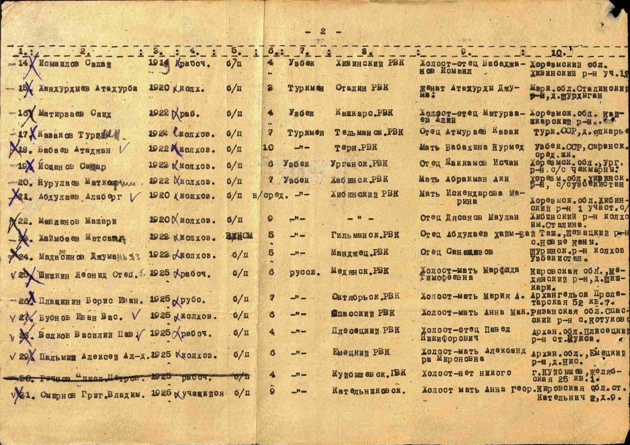 Военно-пересыльный пункт: Саратовский ВПП Выбытие из воинской части: 30.04.1943
